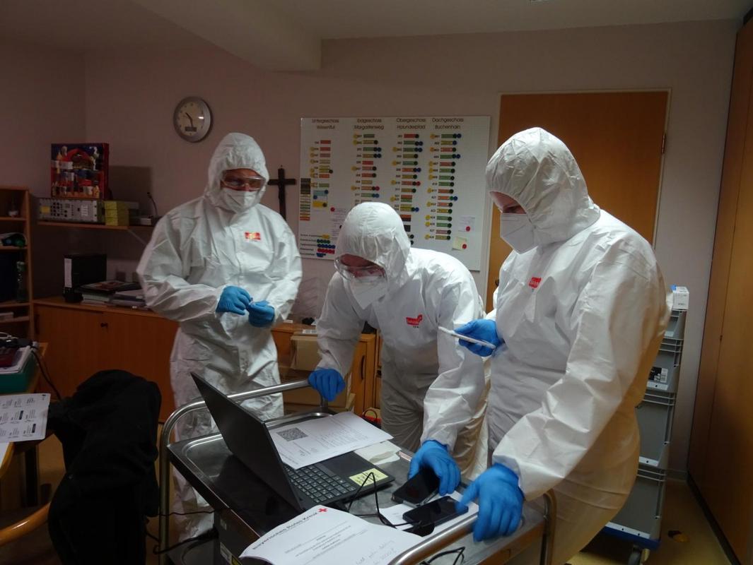 Pflegedienstleiterin Kathrin Schürner begrüße am Sonntagmorgen das mobile Impfteam rund um Dr. Dehling. Nach einer kurzen Besprechung baute das Impfteam das Equipment auf und bereitete die Impfdosen vor. Als Erste ließ sich Betreuungskraft Sabine Tretter eine Dosis des Vakzins injizieren. Nach kleinen technischen Problemen konnten nun auch rund 30 Bewohner die Impfung erhalten. Das Impfteam verabschiedete sich gegen 16:30 Uhr. Alle bisher geimpften Bewohner*innen erhalten in 21 Tagen die zweite Dosis des Serums. Bereits in den nächsten Tagen wird das Impfzentrum die Termine für die restlichen impfwilligen Senioren und Mitarbeiter*innen bekannt geben.