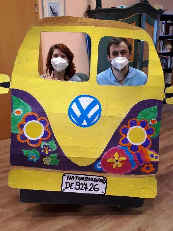 In vielen Stunden Arbeit haben unsere Bewohner*innen zusammen mit Betreuungskraft Karla Lancova einen wunderschönen Bulli gestaltet.