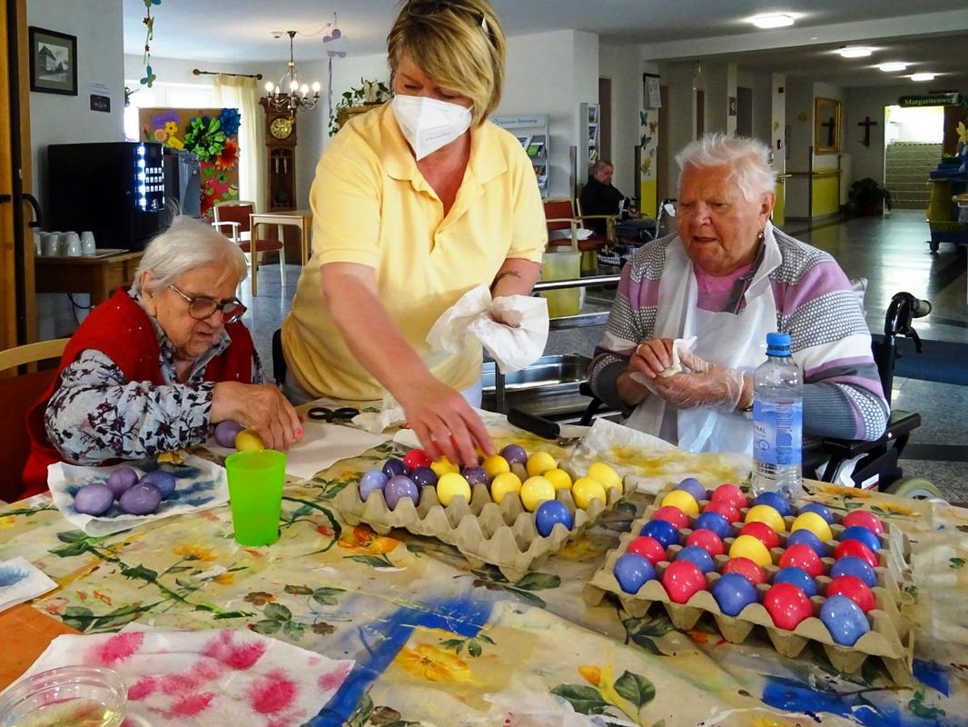 Nachdem es nun bei uns einige Wochen etwas ruhiger gewesen ist, geht das geschäftige Treiben wieder los. Heute hieß es gleich „Hopp, hopp, hopp – Eier färben im Galopp“, denn der Osterhase duldet keine Verspätung. Schließlich will er die Nester am Sonntagmorgen noch vor dem Kirchgang verstecken. Wie auch bereits im letzten Jahr wurden die Eier mit Pflanzenfarben gefärbt.